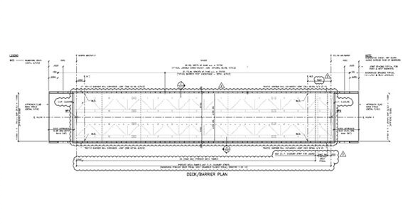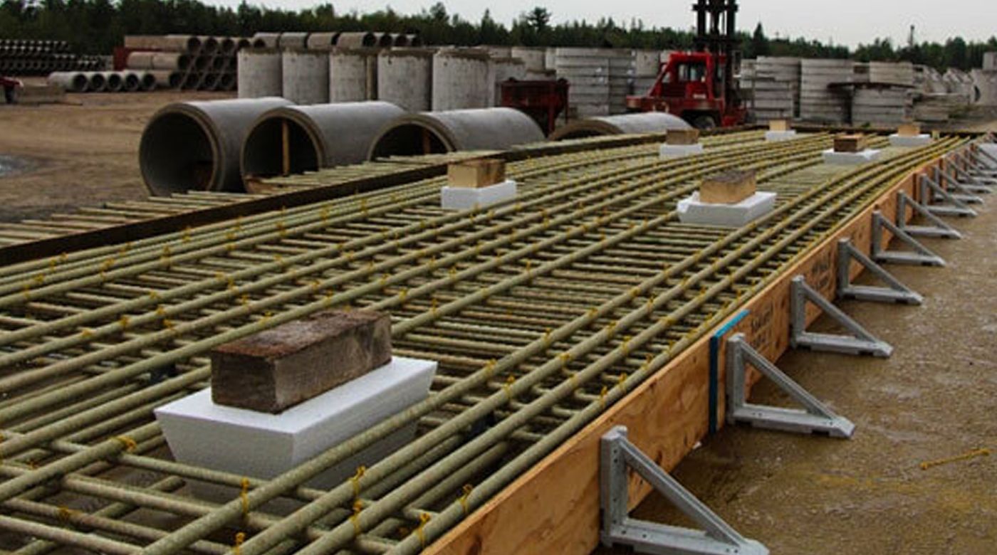 Project Description: A 64.0-m single span bridge constructed using 25 full-scale pre-cast bridge deck panels reinforced with Tuf-Bar GFRP bars. The 12.4 m × 2.44 m pre-cast GFRP-RC bridge deck panels were constructed and installed while the approach slabs, wing walls, and barriers were cast in place. The project was constructed using Grade III straight bars and bends and the bridge deck panels were cast in October 2016. Over 45,000 m of Tuf-Bar GFRP bars were used (manufactured and supplied by Tuf-Bar Canada) which included: 37,000 m of straight bars in the 25 Deck Slabs, Sizes 15 mm, 20 mm, and 25 mm, 8,200 m of straight bars in Barriers, Approach Slabs, and Wing walls, Sizes 15 mm and 20 mm, 725 m of bent bars consisting of 4 configurations, Size 15 mm.