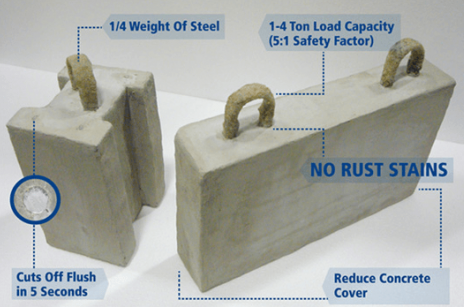 TUF-BAR Fiberglass lifting anchor is one of the best composite products available to our customers. It includes a wide range of features and applications. Some of the distinguishing features include protection against rust stains, corrosion, spalling, and patching. TUF-BAR Fiberglass Lifting anchors are made out of composite materials which are ¼ the weight of steel. Their impeccable strength allows engineers to reduce concrete cover. Some of the applications of fiberglass concrete anchors include beams, posts, piles, thin wall, fencing, road barriers, and concrete panels. Our products guarantee sustainability for more than a hundred years. Capable of 1.5 ton load capacity (5:1 safety factor) and a lifespan of 100+ years, they ensure greater savings in the long run.